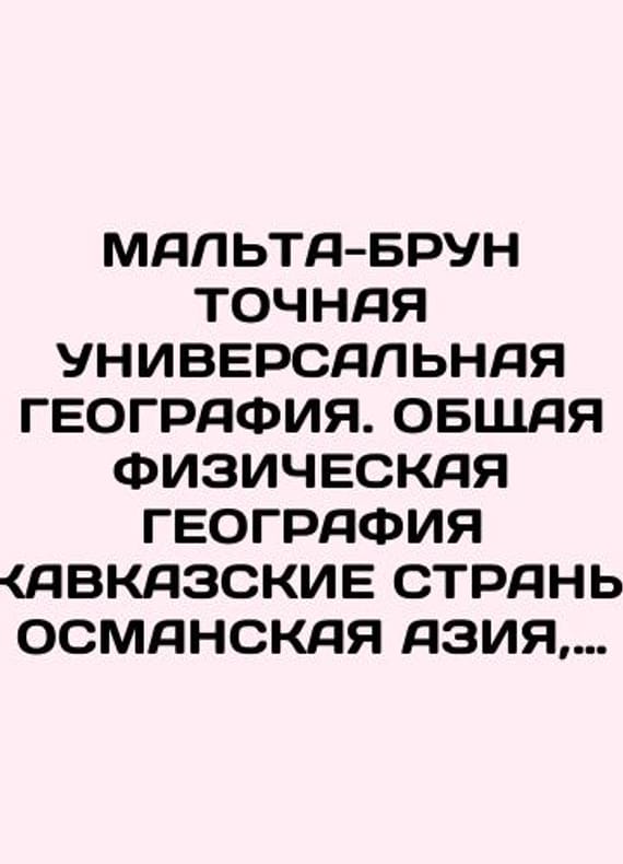 MALTA BRUN POINT UNIVERSAL GEOGRAPHY. General PHYSICAL GEOGRAPHY CAUCASUS COUNTRIES OSPAN ASIA, PERCIA. PARIS./MALTA-BRUN TOChNAYa UNIVERSALNAYa GEOGRAFIYa. OBShchAYa FIZIChESKAYa GEOGRAFIYa KAVKAZSKIE STRANY OSMANSKAYa AZIYa, PERSIYa. PARIZh. MALTA BRUN POINT UNIVERSAL GEOGRAPHY. General PHYSICAL GEOGRAPHY CAUCASUS COUNTRIES OSPAN ASIA, PERCIA. PARIS.We have thousands of titles and often several copies of each title may be available. Please feel free to contact us for a detailed description of the copies available. SKUbd-cf6e671d6b86d4f6.