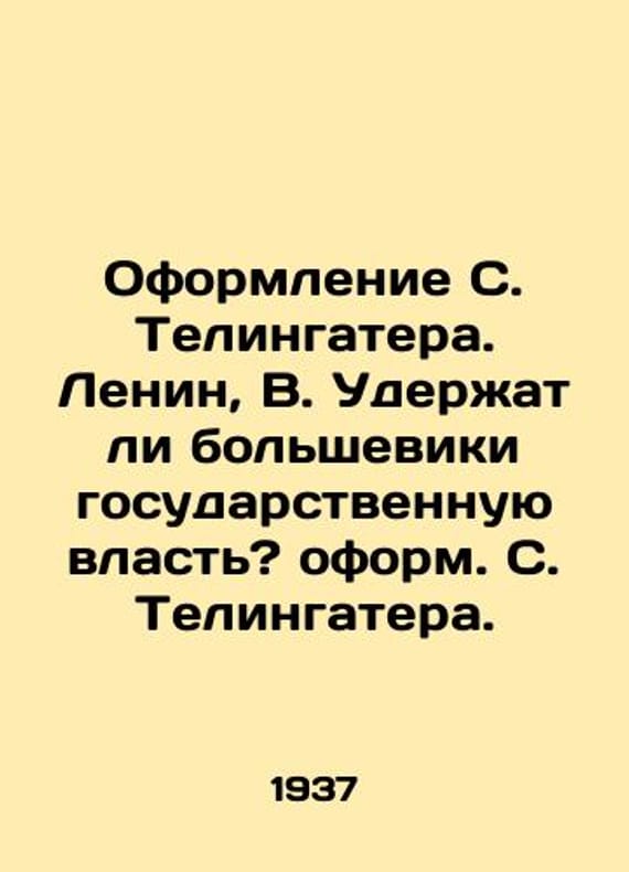 The design of S. Telingater. Lenin, V. Will the Bolsheviks retain state power?/Oformlenie S. Telingatera. Lenin, V. Uderzhat li bolsheviki gosudarstvennuyu vlast? oform. S. Telingatera. Design of S. Telingater. Lenin, V. Will Bolsheviks retain state power? Designed by S. Telingater. Moscow: Partizdat of the Central Committee of the All-Union Communist Party (B), 1937. We have thousands of titles and often several copies of each title may be available. Please feel free to contact us for a detailed description of the copies available. SKUbd-cfd0fc3934e78919.