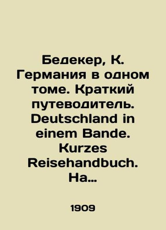 Bedeker, K. Germany in one volume. A short guide. Deutschland in einem Bande. Kurzes Reisehandbuch. In German: Karl Baedeker, 19/Bedeker, K. Germaniya v odnom tome. Kratkiy putevoditel. Deutschland in einem Bande. Kurzes Reisehandbuch. Na nem. yaz. Leyptsig: Karl Baedeker, 19 Bedeker, K. Germany in one volume. A short guide. Deutschland in einem Bande. Kurzes Reisehandbuch. In German: Karl Baedeker, 1909. XXVI, 446 p., 78 l. maps, plan. 15.5 - 10.5 sm.We have thousands of titles and often several copies of each title may be available. Please feel free to contact us for a detailed description of the copies available. SKUbd-cfe9c420c93deac2.