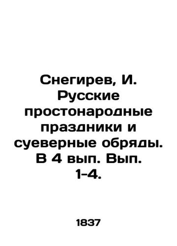 Snegirev, I. Russian common folk holidays and superstitious rites. In 4 Issues 1-4./Snegirev, I. Russkie prostonarodnye prazdniki i suevernye obryady. V 4 vyp. Vyp. 1-4. Snegirev, I. Russian Common Folk Holidays and Superstitious Rites. In Issues 1-4. Moscow: In the Univ. Type., 1837-1839. We have thousands of titles and often several copies of each title may be available. Please feel free to contact us for a detailed description of the copies available. SKUbd-d0714433186dc8fc.