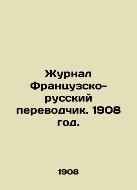 Journal of French-Russian Translator. 1908./Zhurnal Frantsuzsko-russkiy perevodchik. 1908 god. Vuibert et none editeurs. Paris, 1908 Publishers Vuibert and Noni. Paris, 1908. The Convolute included the following issues: 1. # 9. January 10 (December 28, 1907) 1908. 2. # 10. January 25 (January 12, 1908). # 11. February 10 (January 28, 1908). # 12. February 25 (February 12, 1908). # 13. March 10 (February 26, 1908). # 14. 25 March (March 12, 1908). # 15. April 10 (March 28, 1908). # 16. April 25 (April 12, 1908). We have thousands of titles and often several copies of each title may be available. Please feel free to contact us for a detailed description of the copies available. SKUbd-d124252441fe7886.