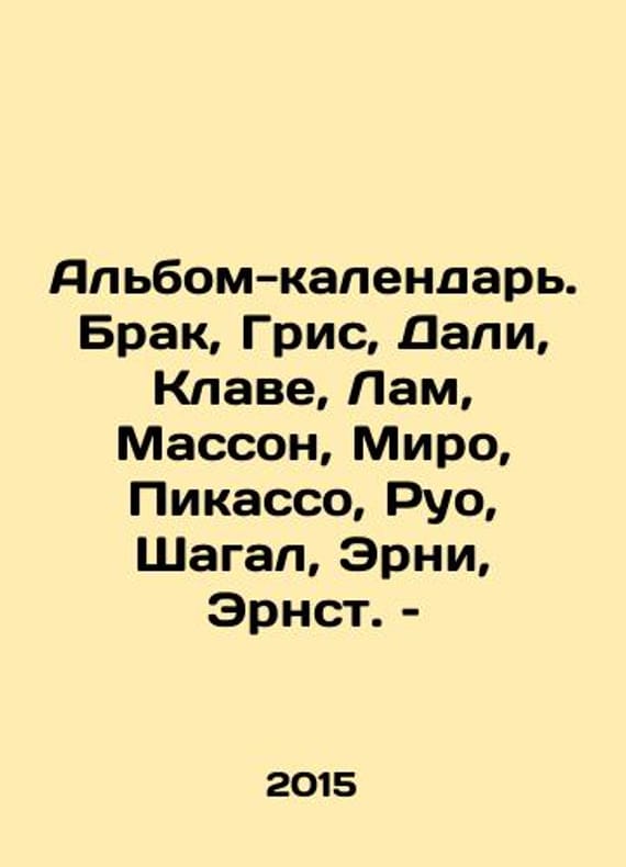 Calendar album: Marriage, Grice, Dali, Clawe, Lam, Masson, Miro, Picasso, Rouot, Chagall, Ernie, Ernst./Albom-kalendar. Brak, Gris, Dali, Klave, Lam, Masson, Miro, Pikasso, Ruo, Shagal, Erni, Ernst. Book of the artist from the collections of G. Gens and B. Friedman. Calendar album: Marriage, Gris, Dali, Clave, Lam, Masson, Miro, Picasso, Rouot, Chagall, Ernie, Ernst. We have thousands of titles and often several copies of each title may be available. Please feel free to contact us for a detailed description of the copies available. SKUbd-d163778b487e3e2a.