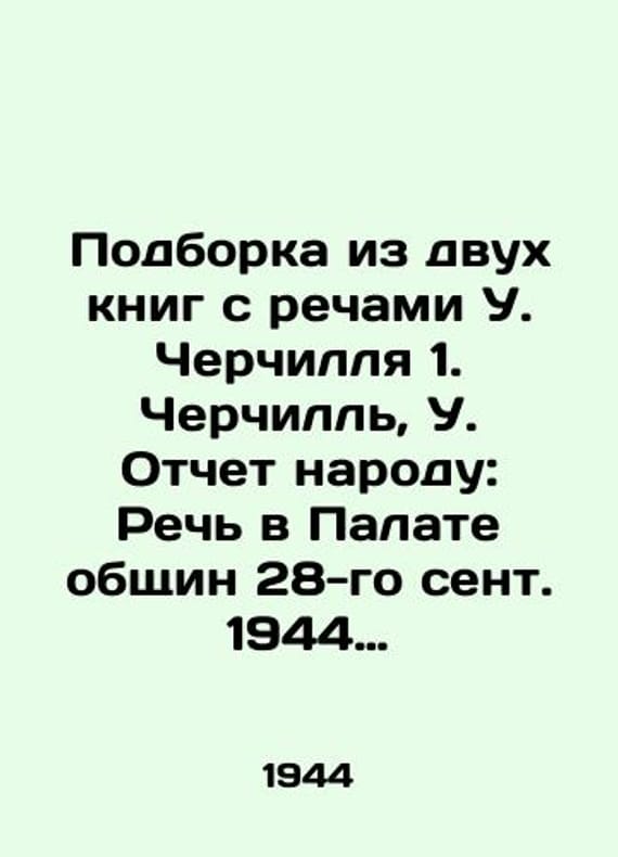 "Compilation of two books containing speeches by Winston Churchill 1. Churchill, W. Report to the People: Speech in the House of Commons on September 28, 1944 -/Podborka iz dvukh knig s rechami U. Cherchillya 1. Cherchill, U. Otchet narodu: Rech v Palate obshchin 28-go sent. 1944 g.- Churchill, W. Report to the People: Speech in the House of Commons on September 28, 1944 - M.: Press Department of the British Embassy, 1944.-20 p.;. We have thousands of titles and often several copies of each title may be available. Please feel free to contact us for a detailed description of the copies available. SKUbd-d1c74e1d5b748044."