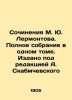 Works by M. Yu. Lermontov. Complete collection in one volume. Edited by A. Skabmchevsky/Sochineniya M. Yu. Lermontova. Polnoe sobranie v odnom tome. Izdano pod redaktsiey A. Skabmchevskogo Works by M. Yu. Lermontov. Complete collection in one volume. Published under the editorship of A. Skabmchevsky With a portrait of Lermontov and his relatives, his biography, facsimile, with pictures of the grotto, monument, house of E. Arsenyeva, with 4 drawings by Lermontov and 138 drawings by the artist M. Malyshev.We have thousands of titles and often several copies of each title may be available. Please feel free to contact us for a detailed description of the copies available. SKUbd-d1ca758f556b6341.