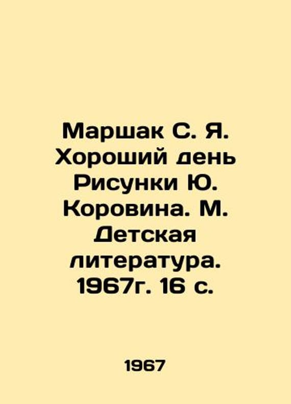 Marshak S. Ya. Good Day Sketches by Yu Korovin. M. Childrens Literature. 1967. 16 p./Marshak S. Ya. Khoroshiy den Risunki Yu. Korovina. M. Detskaya literatura. 1967g. 16 s. Marshak S. Ya. Good Day Sketches by Yu Korovin. M. Childrens Literature. 1967. 16 We have thousands of titles and often several copies of each title may be available. Please feel free to contact us for a detailed description of the copies available. SKUbd-d3b3cbf2dd8e166e.