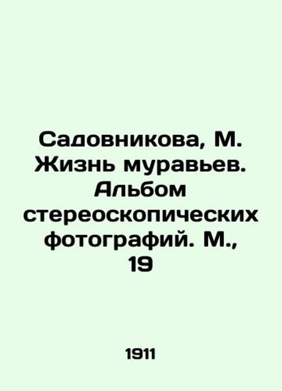 Sadovnikova, M. Life of ants. Album of stereoscopic photographs. Moscow, 19/Sadovnikova, M. Zhizn muravev. Albom stereoskopicheskikh fotografiy. M., 19 Sadovnikova, M. Life of ants. Album of stereoscopic photographs. Moscow, 1911.We have thousands of titles and often several copies of each title may be available. Please feel free to contact us for a detailed description of the copies available. SKUbd-d43daa9214eb1d0d.