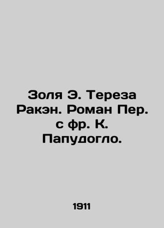"Zola E. Therese Raquin. Roman Per. with K. Papudoglo./Zolya E. Tereza Raken. Roman Per. s fr. K. Papudoglo. Zola E. Teresa Raken. Roman Per. with K. Papudoglo. Moscow: Sphinx, 1911. 360 p., il.;. SKUbd-d4b79ccb121a333c.We have thousands of titles and often several copies of each title may be available. Please feel free to contact us for a detailed description of the copies available. The delivery of this book might be delayed beyond the usual time due to extended processing and preparation before shipment, and faster shipping options are not offered. Please inform us if you need the order by a certain date or have a deadline.SKUbd-d4b79ccb121a333c"