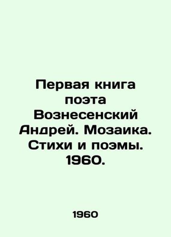 The first book of the poet Andrey Voznesensky. Mosaic. Poems and Poems. 1960./Pervaya kniga poeta Voznesenskiy Andrey. Mozaika. Stikhi i poemy. 1960. Voznesensky Andrey. Mosaic. Poems and Poems. Vladimir. Vladimir Book Publishing House. 1960. 72 pp.We have thousands of titles and often several copies of each title may be available. Please feel free to contact us for a detailed description of the copies available. SKUbd-bbd7ebc56cce968.