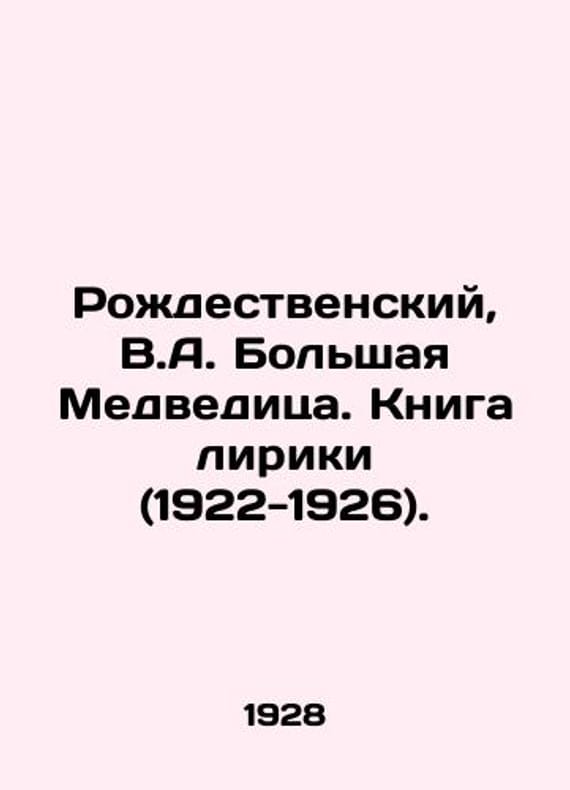 Rozhdestvensky, V.A. The Big Bear. Lyric Book (1922-1926)./Rozhdestvenskiy, V.A. Bolshaya Medveditsa. Kniga liriki (1922-1926). Rozhdestvensky, V.A. The Big Bear. Lyric Book (1922-1926). We have thousands of titles and often several copies of each title may be available. Please feel free to contact us for a detailed description of the copies available. The delivery of this book might be delayed beyond the usual timeframe due to extended processing and preparation before shipment, and faster shipping options are not offered. Please inform us if you need the order by a certain date or have a deadline.SKUbd-d6bbb44a75736322