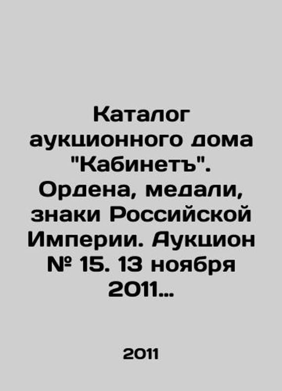 Catalogue of the auction house Cabinet. Orders, medals, insignia of the Russian Empire. Auction # 15. November 13, 2011./Katalog auktsionnogo doma Kabinet. Ordena, medali, znaki Rossiyskoy Imperii. Auktsion # 15. 13 noyabrya 2011 god. Our Art Publishing House and the Kabinet Auction House. The catalogue was compiled by Konstantin Zuromsky with the participation of Irina Saburova, Alina Solovyeva, Lyudmila Nikitina and others. We have thousands of titles and often several copies of each title may be available. Please feel free to contact us for a detailed description of the copies available. SKUbd-d6c52e17c132e3a7.
