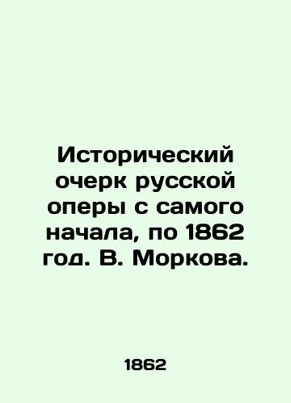Historical sketch of Russian opera from the very beginning, until 1862. V. Morkov./Istoricheskiy ocherk russkoy opery s samogo nachala, po 1862 god. V. Morkova. Historical sketch of Russian opera from the very beginning, until 1862. V. Morkov. St. Petersburg 1862. We have thousands of titles and often several copies of each title may be available. Please feel free to contact us for a detailed description of the copies available. SKUbd-d71c20ff248a22af.