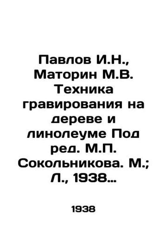 "Pavlov I.N., Matorin M.V. Engraving technique on wood and linoleum Under the editorship of M. Sokolnikov. M.; L., 1938./Pavlov I.N., Matorin M.V. Tekhnika gravirovaniya na dereve i linoleume Pod red. M. Sokolnikova. M.; L., 1938 g. Pavlov I.N., Matorin M.V. Engraving technique on wood and linoleum Under the editorship of M. Sokolnikov. Moscow; L., 1938. Pavlov. 140 p., 5 incl., il.; 22.2 - 15.4 sm. We have thousands of titles and often several copies of each title may be available. Please feel free to contact us for a detailed description of the copies available. SKUbd-d7b56920b561af14."