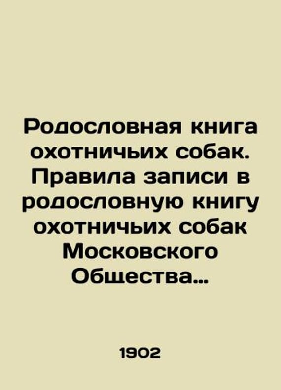 The Family Book of Hunting Dogs. Rules of Entry into the Family Book of Hunting Dogs of the Moscow Society of Hunting named after Emperor Alexander II. (1862-1902)/Rodoslovnaya kniga okhotnichikh sobak. Pravila zapisi v rodoslovnuyu knigu okhotnichikh sobak Moskovskogo Obshchestva Okhoty im. imperatora Aleksandra II. (1862-1902). V 5 t. T. 1: Po 1-e marta 1902 g. The Family Book of Hunting Dogs. Rules of Entry into the Family Book of Hunting Dogs of the Moscow Society of Hunting named after Emperor Alexander II. (1862-1902). In 5 Vol. Vol. 1: Through March 1, 1902, Moscow: T-v Skoropech. A.A. Levenson, 1902. 4, 411 p. 26 - 18.5 sm. We have thousands of titles and often several copies of each title may be available. Please feel free to contact us for a detailed description of the copies available. SKUbd-d80639f657243f7a.