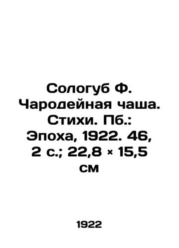 "Sologub F. Enchantment bowl. Poems. Pb.: Epoch, 1922. 46, 2 p.; 22.8 - 15.5 cm/Sologub F. Charodeynaya chasha. Stikhi. Pb.: Epokha, 1922. 46, 2 s.; 22,8 - 15,5 sm Sologub F. Enchantment bowl. Poems. Pb.: Epoch, 1922. 46, 2 p.; 22.8 - 15.5 sm. We have thousands of titles and often several copies of each title may be available. Please feel free to contact us for a detailed description of the copies available. SKUbd-d807c180aeb9390."