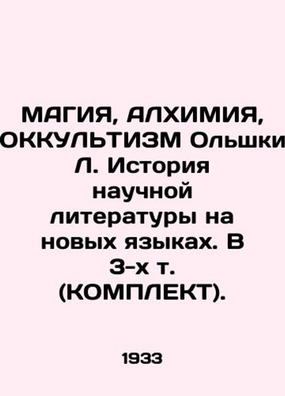 MAGIA, ALCHEMIA, OCCULTISM Olschka L. History of scientific literature in new languages. In 3 Vol. (KOMPLECT)./MAGIYa, ALKhIMIYa, OKKULTIZM Olshki L. Istoriya nauchnoy literatury na novykh yazykakh. V 3-kh t. (KOMPLEKT). M-L. GTTI. 1933-34, 304 and 212 and 324We have thousands of titles and often several copies of each title may be available. Please feel free to contact us for a detailed description of the copies available. SKUbd-96cc7e45755d5f87.