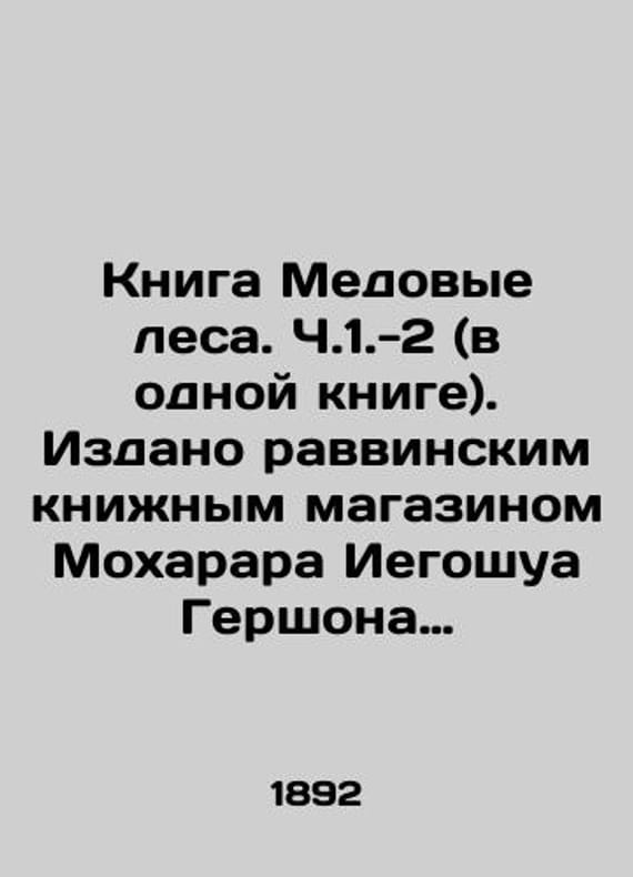 The Book of Honey Forests. Part 1.-2 (in one book). Published by the rabbinical bookstore of Moharar Jehoshua Gershon Monk. Jarot Dwash. Warsaw 1892, 294 p./Kniga Medovye lesa. Ch.1.-2 (v odnoy knige). Izdano ravvinskim knizhnym magazinom Mokharara Iegoshua Gershona Monka. Yarot Dvash. Varshava 1892g., 294str. The Book of Honey Forests. Part 1.-2 (in one book). Published by the rabbinical bookstore of Moharar Jehoshua Gershon Monk. Jarot Dwash. Warsaw 1892, 294 We have thousands of titles and often several copies of each title may be available. Please feel free to contact us for a detailed description of the copies available. SKUbd-d9004b8b3afb6909.