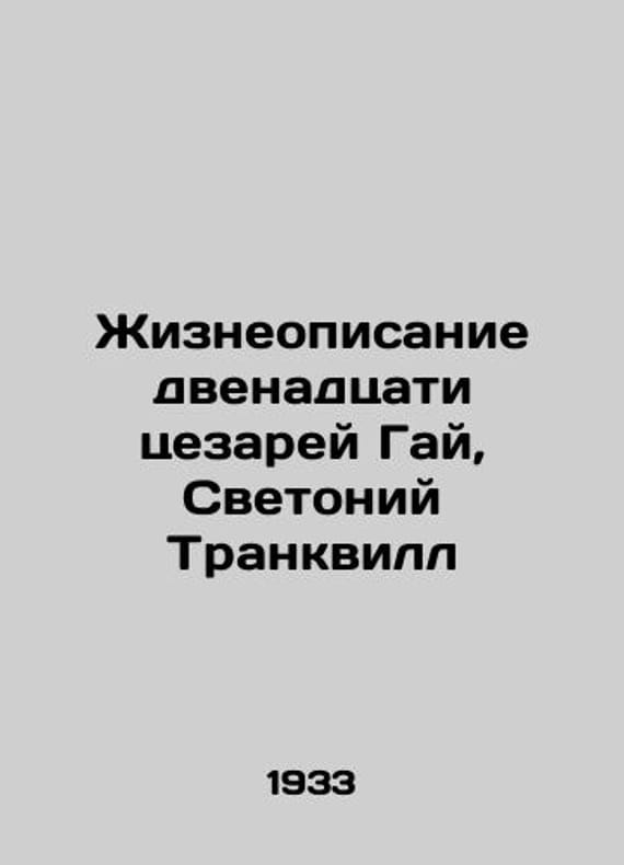 "The Life of the Twelve Caesars Guy, Svetonius Tranquillus/Zhizneopisanie dvenadtsati tsezarey Gay, Svetoniy Trankvill The Life Description of the Twelve Caesars Guy, Svetonius Trankville; Translated from Latin and note by D. Konchalovsky; Predisl. A. I. Piotrovsky; Moscow; Leningrad: Academia, MSMXXXIII 1933 (Moscow: The Book of the Creed Proletarian). We have thousands of titles and often several copies of each title may be available. Please feel free to contact us for a detailed description of the copies available. SKUbd-d9006c85b1c79437."