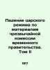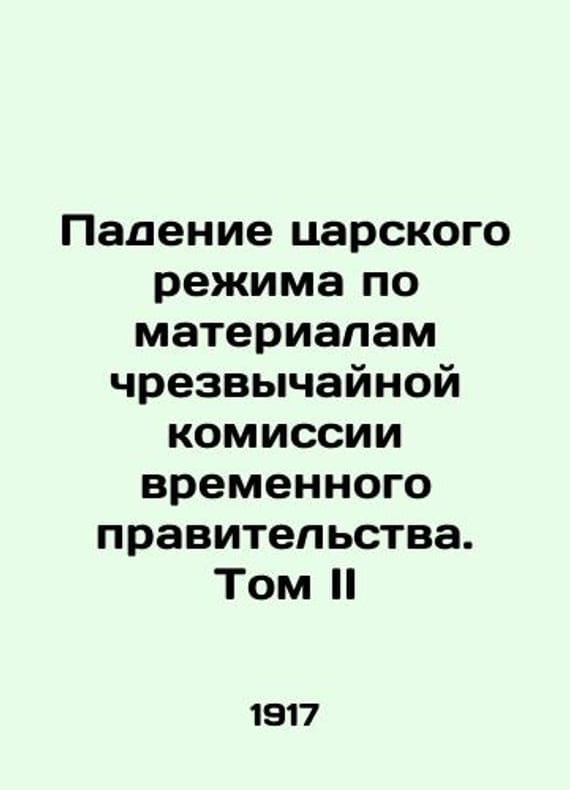 The Fall of the Tsarist Regime, based on the materials of the Provisional Governments Emergency Commission, Volume I/Padenie tsarskogo rezhima po materialam chrezvychaynoy komissii vremennogo pravitelstva. Tom II The fall of the tsarist regime on the basis of the materials of the emergency commission of the provisional government. Volume II Verbatim records of interrogations and testimonies given in 1917 at the Emergency Investigation Commission of the Provisional Government. Editing by E. Shchegolev. Interrogations: A.D. Protopova, M.M. Andronikov, A.T. Vasiliev, I.F. Manasevich-Manuilov, A.A. Makarov, K.D. Kafafafova, M.A. Belyaeva, N.D. Golitsyn, N.A. Dobrovolsky, I.G. Shcheglovitova. We have thousands of titles and often several copies of each title may be available. Please feel free to contact us for a detailed description of the copies available. SKUbd-daa44a51a2f51143.