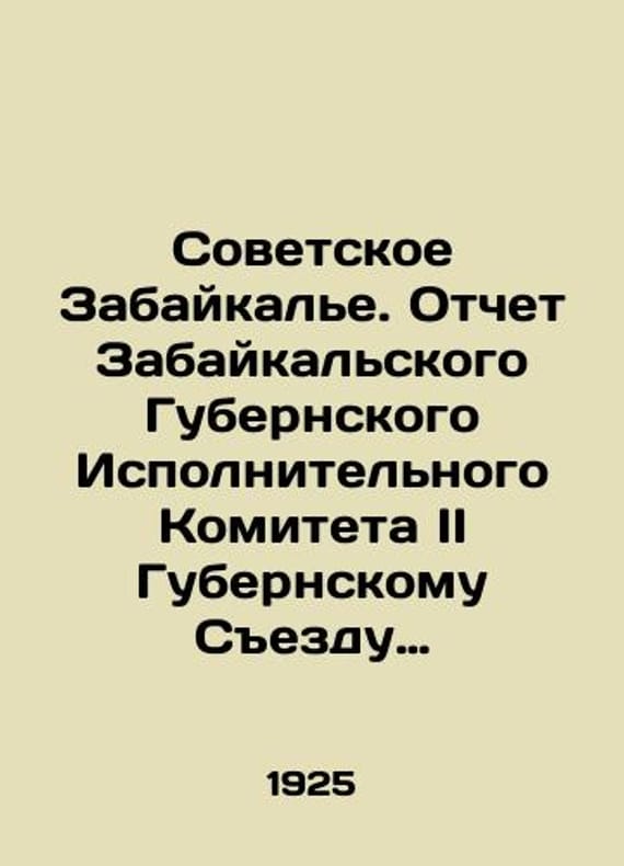 Soviet Trans-Baikal. Report of the Trans-Baikal Province Executive Committee to the Second Provincial Congress of Soviets. 1925./Sovetskoe Zabaykale. Otchet Zabaykalskogo Gubernskogo Ispolnitelnogo Komiteta II Gubernskomu Sezdu Sovetov. 1925 god. Edition of Zabaikalsky State Executive Committee. Chit. 1925. Circulation 1,000. We have thousands of titles and often several copies of each title may be available. Please feel free to contact us for a detailed description of the copies available. SKUbd-db76e566ef260404.