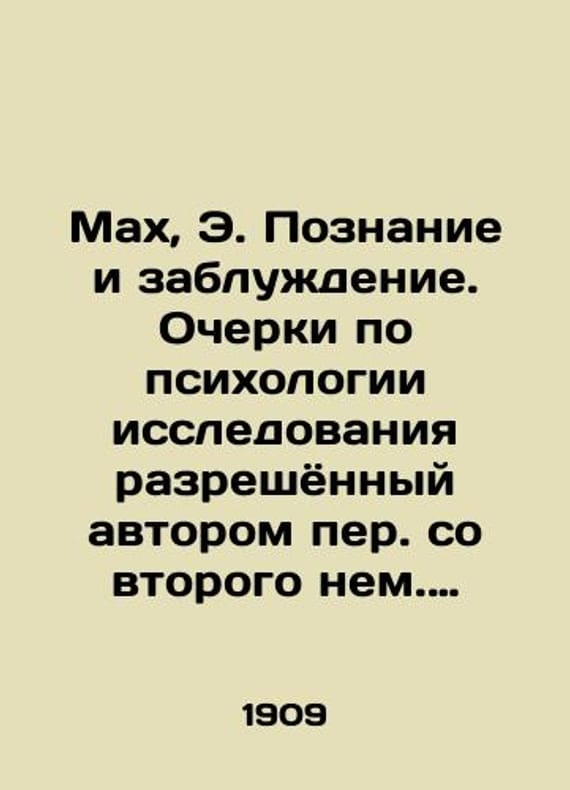 Mach, E. Cognition and Delusion. Essays on the psychology of research, authorized by the author of translation from the second German edition of G. Kotlyar, edited by Prof. N. Lange./Makh, E. Poznanie i zabluzhdenie. Ocherki po psikhologii issledovaniya razreshyonnyy avtorom per. so vtorogo nem. izd. G. Kotlyara, pod red. prof. N. Lange. Mach, E. Cognition and Delusion. Essays on the psychology of research, authorized by the author of the translation from the second German edition of G. Kotlyar, edited by Professor N. Lange. We have thousands of titles and often several copies of each title may be available. Please feel free to contact us for a detailed description of the copies available. SKUbd-db806d23dfea9384.
