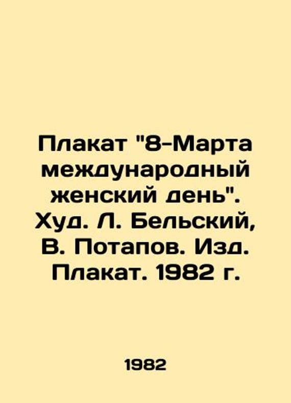 Poster March 8 - International Womens Day. Hud. L. Belsky, V. Potapov. Poster. 1982./Plakat 8-Marta mezhdunarodnyy zhenskiy den. Khud. L. Belskiy, V. Potapov. Izd. Plakat. 1982 g. Poster March 8 - International Womens Day. Hud L. Belsky, V. Potapov. Poster. 1982.We have thousands of titles and often several copies of each title may be available. Please feel free to contact us for a detailed description of the copies available. The delivery of this book might be delayed beyond the usual timeframe due to extended processing and preparation before shipment, and faster shipping options are not offered. Please inform us if you need the order by a certain date or have a deadline.SKUbd-dbb4a0488fa7a2cf
