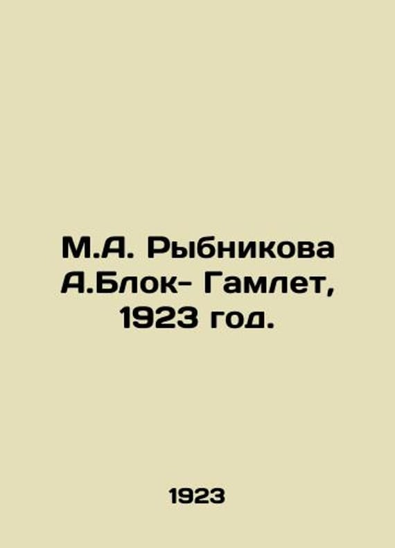 M.A. Rybnikova A.Block-Hamlet, 1923./M.A. Rybnikova A.Blok- Gamlet, 1923 god. Moscow: Svetlana, 1923. Russian Society of Book Friends. We have thousands of titles and often several copies of each title may be available. Please feel free to contact us for a detailed description of the copies available. SKUbd-df200d88f60debdc.