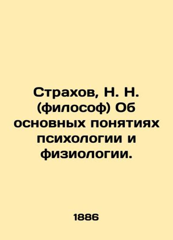 Strakhov, N. N. (philosopher) On the basic concepts of psychology and physiology./Strakhov, N. N. (filosof) Ob osnovnykh ponyatiyakh psikhologii i fiziologii. Strakhov, N. N. (Philosopher) On the Basic Concepts of Psychology and Physiology. St. Petersburg: Panteleevs, 1886.-XIV, 317We have thousands of titles and often several copies of each title may be available. Please feel free to contact us for a detailed description of the copies available. The delivery of this book might be delayed beyond the usual timeframe due to extended processing and preparation before shipment, and faster shipping options are not offered. Please inform us if you need the order by a certain date or have a deadline.SKUbd-df8611b4f762d72c