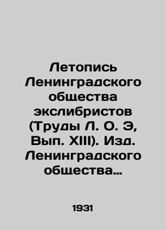 Chronicle of the Leningrad Exlimist Society (Proceedings of the Leningrad Exlimist Society, 1931 -)./Letopis Leningradskogo obshchestva ekslibristov (Trudy L. O. E, Vyp. XIII). Izd. Leningradskogo obshchestva ekslibristov. Leningrad, 1931 g. - Chronicle of the Leningrad Exlimist Society (Proceedings of the Leningrad Exlimist Society, 1931 -).We have thousands of titles and often several copies of each title may be available. Please feel free to contact us for a detailed description of the copies available. SKUbd-dfc70bf61ad40189.