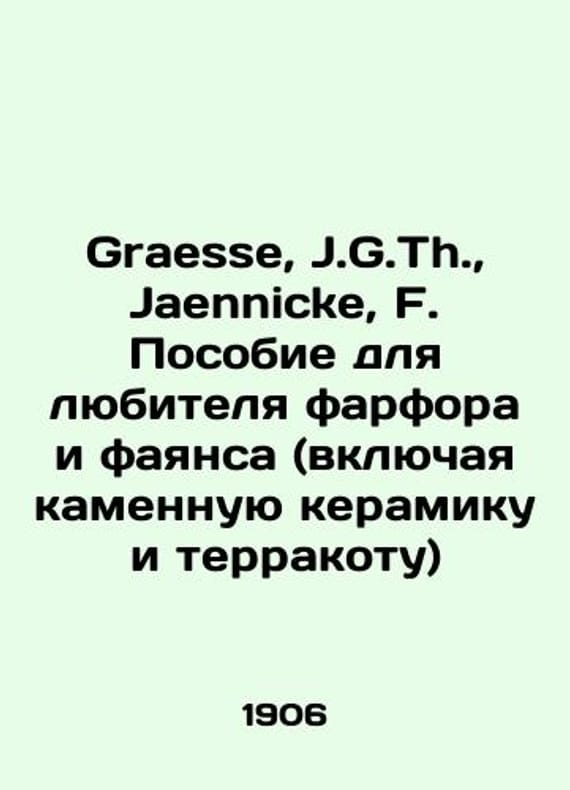 Graesse, J.G.T., Jaennicke, F. A guide for the lover of porcelain and faience (including stone ceramics and terracotta)/Graesse, J.G.Th., Jaennicke, F. Posobie dlya lyubitelya farfora i fayansa (vklyuchaya kamennuyu keramiku i terrakotu) Graesse, J.G.TH., Jaennicke, F. A guide for the lover of porcelain and faience (including stone ceramics and terracotta) Guide de lamateur de Porcelains et de Faiences (y compris gres et terres-cuites) -11th edition Leipzig: Richard Carl Schmidt & Co, 1906. We have thousands of titles and often several copies of each title may be available. Please feel free to contact us for a detailed description of the copies available. SKUbd-dfdbec179db7e274.