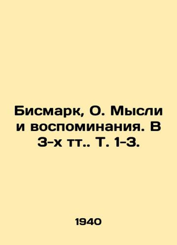 Bismarck, O. Thoughts and Memories. In 3 vol. Vol. 1-3./Bismark, O. Mysli i vospominaniya. V 3-kh tt. T. 1-3. M.: GIZ-Spb.Ÿ ill.·, 1940-1941.-.1.-XLVIII, 334, 2,.We have thousands of titles and often several copies of each title may be available. Please feel free to contact us for a detailed description of the copies available. SKUbd-dfff32052a1e98c6.