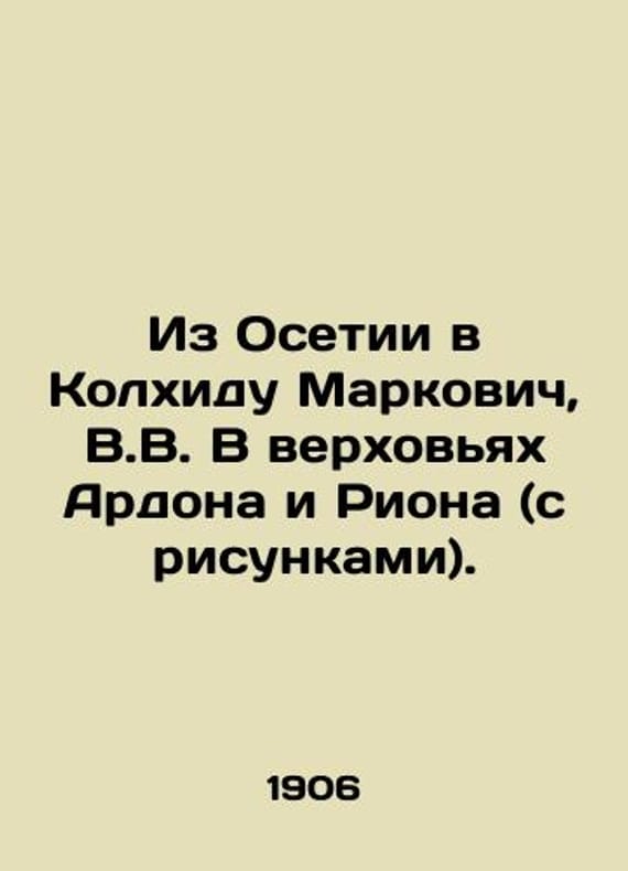 "From Ossetia to Kolkhida Markovich, V.V. In the Upper Ardon and Rion (with pictures)./Iz Osetii v Kolkhidu Markovich, V.V. V verkhovyakh Ardona i Riona (s risunkami). Vasily Vasilyevich Markovich (1861-1941) was a geographer, botanist, and traveler; he served in the forest service in Ossetia and Chechnya, at different times as director of the Sochi and Sukhumi experimental garden stations; and in the early twentieth century, on behalf of the Geographic Society, he studied the Caucasus glaciers.We have thousands of titles and often several copies of each title may be available. Please feel free to contact us for a detailed description of the copies available. SKUbd-e120d9548917efbb."