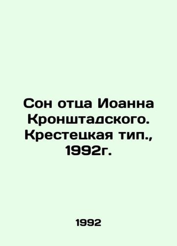 The Dream of Father John of Kronstadt. The Cross Type, 1992./Son ottsa Ioanna Kronshtadskogo. Krestetskaya tip., 1992g. The Dream of Father John of Kronstadt. The Cross Type, 1992. We have thousands of titles and often several copies of each title may be available. Please feel free to contact us for a detailed description of the copies available. SKUbd-e150e8444337de98.