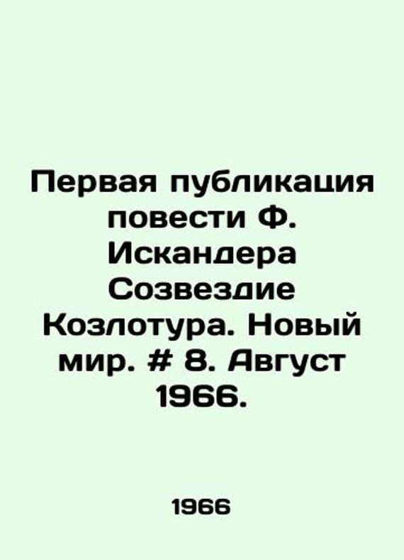 First publication of F. Iskanders novel The Kozlothur Constellation. The New World. # 8. August 1966./Pervaya publikatsiya povesti F. Iskandera Sozvezdie Kozlotura. Novyy mir. # 8. Avgust 1966. First publication of F. Iskanders novel The Kozlothur Constellation. The New World. # 8. August 1966. We have thousands of titles and often several copies of each title may be available. Please feel free to contact us for a detailed description of the copies available. The delivery of this book might be delayed beyond the usual timeframe due to extended processing and preparation before shipment, and faster shipping options are not offered. Please inform us if you need the order by a certain date or have a deadline.SKUbd-e15bd096da2c61af