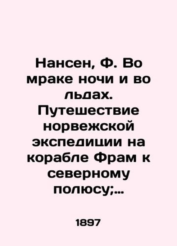 "Nansen, F. In the Darkness of Night and in the Ice. Norwegian expedition on Fram to the North Pole; edited by N. Berezin. In 2 Vol. Vol. 1-2./Nansen, F. Vo mrake nochi i vo ldakh. Puteshestvie norvezhskoy ekspeditsii na korable Fram k severnomu polyusu; pod red. N. Berezina. V 2 t. T. 1-2. Nansen, F. In the Darkness of Night and in the Ice. Norwegian expedition on the ship Fram to the North Pole; edited by N. Berezin. In 2 Vol. Vol. 1-2. St. Petersburg: Type. Kouchneryov and Co, 1897-1899. We have thousands of titles and often several copies of each title may be available. Please feel free to contact us for a detailed description of the copies available. SKUbd-e286cebddc7bb8d0."