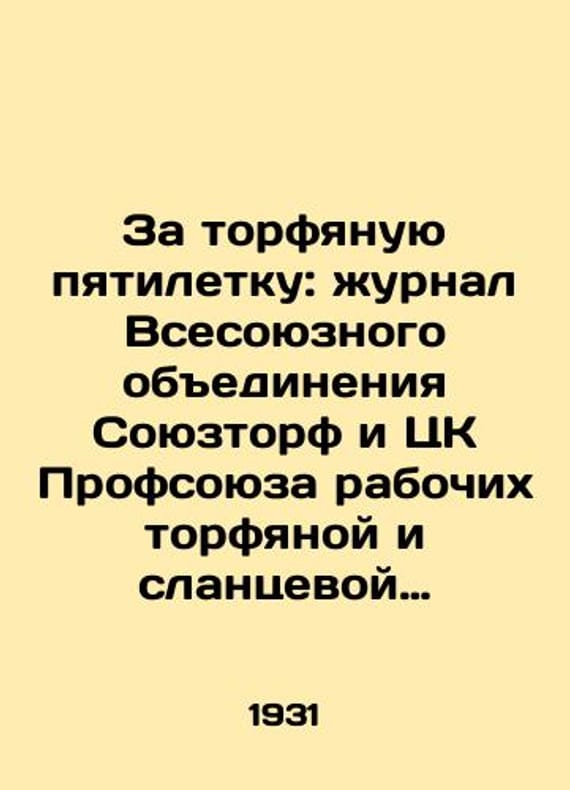 For the Peat Five-Year Plan: Journal of the All-Union Union Union of Soyuztorf and the Central Committee of the Trade Union of Peat and Shale Industry Workers. # 1, 1931./Za torfyanuyu pyatiletku: zhurnal Vsesoyuznogo obedineniya Soyuztorf i TsK Profsoyuza rabochikh torfyanoy i slantsevoy promyshlennosti. #1, 1931. For the Peat Five-Year Plan, the journal of the All-Union Union Union of Soyuztorf and the Central Committee of the Trade Union of Peat and Shale Workers, was published in Moscow and Leningrad between 1931 and 1932 at monthly intervals. We have thousands of titles and often several copies of each title may be available. Please feel free to contact us for a detailed description of the copies available. SKUbd-e295c1744a7c4283.