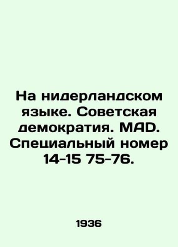 "In Dutch. Soviet Democracy. MAD. Special Issue 14-15 75-76./Na niderlandskom yazyke. Sovetskaya demokratiya. MAD. Spetsialnyy nomer 14-15 75-76. In Dutch. Soviet Democracy. Sketches by MAD. Special issue 14-15 75-76. From the book Sovjet-democratie. Teekeningen van MAD. Speciaal nummer 14-1575-76. Van de Anticommunitische documenteering van cilacc. 1936.-156-182 p.;. We have thousands of titles and often several copies of each title may be available. Please feel free to contact us for a detailed description of the copies available. The delivery of this book might be delayed beyond the usual timeframe due to extended processing and preparation before shipment, and faster shipping options are not offered. Please inform us if you need the order by a certain date or have a deadline.SKUbd-e29829f9249c0110"