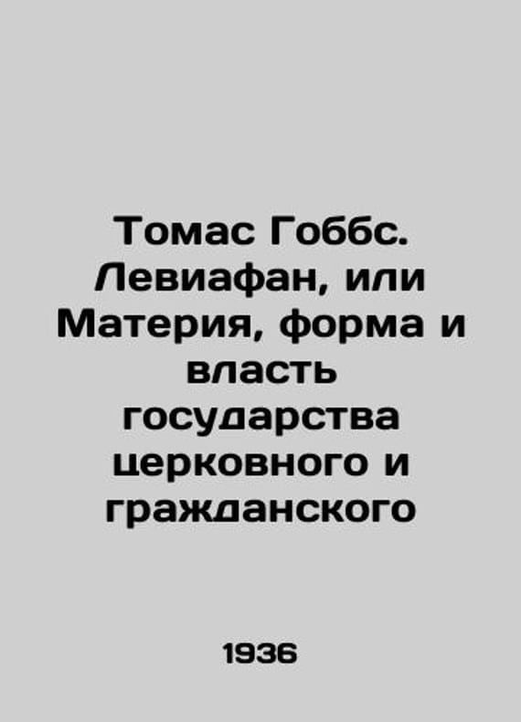 Thomas Hobbes. Leviathan, or Matter, Form, and Power of the State of Church and Civic/Tomas Gobbs. Leviafan, ili Materiya, forma i vlast gosudarstva tserkovnogo i grazhdanskogo Thomas Hobbes. Leviathan, or Matter, the Form and Power of the State of Church and Civil. (Library of Materialism). Preface and Editorial by A. Cheskis. M. State Socio-Economic Publishing House. 1936. 504 p.We have thousands of titles and often several copies of each title may be available. Please feel free to contact us for a detailed description of the copies available. SKUbd-e2da8e79acc5db97.