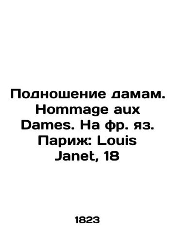 Offering to the ladies. Hommage aux Dames. In French: Paris: Louis Janet, 18/Podnoshenie damam. Hommage aux Dames. Na fr. yaz. Parizh: Louis Janet, 18 Offering to the ladies. Hommage aux Dames. Paris: Louis Janet, 1823. 1 liter of gravel, 24, 156 p., 6 liters of gravel and Souvenirs et pensees. 1 liter tit., 12 p. 12 - 7.8 sm. We have thousands of titles and often several copies of each title may be available. Please feel free to contact us for a detailed description of the copies available. The delivery of this book might be delayed beyond the usual timeframe due to extended processing and preparation before shipment, and faster shipping options are not offered. Please inform us if you need the order by a certain date or have a deadline.SKUbd-e357e91e59d3e024