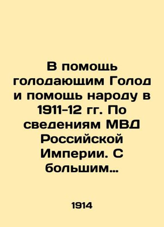 To help starving people and help the people in 1911-12. According to the Ministry of Internal Affairs of the Russian Empire. With a large number of photos. 1914./V pomoshch golodayushchim Golod i pomoshch narodu v 1911-12 gg. Po svedeniyam MVD Rossiyskoy Imperii. S bolshim kolichestvom fotografiy. 1914 g. Saint Petersburg: Imprimerie de lImprimerie de lEtat, 1914. 151, 1 p., 31.5x23.5 sm. We have thousands of titles and often several copies of each title may be available. Please feel free to contact us for a detailed description of the copies available. SKUbd-e41acc96560b6a5b.