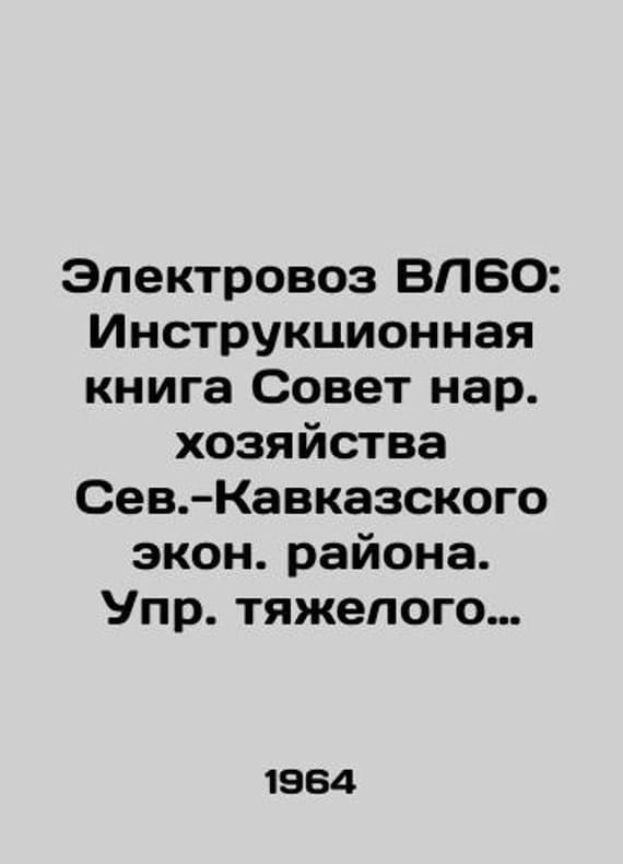 "VL60 electric locomotive: Instructions Book Council of the North Caucasus Economic Area. Heavy machine building unit. Novocherka. electric locomotive building plant. 1964. 271 p./Elektrovoz VL60: Instruktsionnaya kniga Sovet nar. khozyaystva Sev.-Kavkazskogo ekon. rayona. Upr. tyazhelogo mashinostroeniya. Novocherkas. elektrovozostroit. zavod. 1964. 271 s. This is a technical guide for locomotive crews and maintenance personnel. It describes in detail: Electric locomotive design: mechanical part (body, carts, wheel pairs, spring suspension); electrical part (traction engines, transformers, rectifiers, control apparatus); pneumatic equipment (compressors, reservoirs, braking devices). SKUbd-e42e6afece3c7c16.We have thousands of titles and often several copies of each title may be available. Please feel free to contact us for a detailed description of the copies available. The delivery of this book might be delayed beyond the usual time due to extended processing and preparation before shipment, and faster shipping options are not offered. Please inform us if you need the order by a certain date or have a deadline.SKUbd-e42e6afece3c7c16"