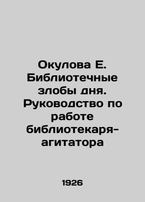 Okulova E. Library Evil of the Day: A Guide to the Work of a Librarian-Agitator/Okulova E. Bibliotechnye zloby dnya. Rukovodstvo po rabote bibliotekarya-agitatora Okulova E. Library Evil of the Day. Guide to the work of a librarian-agitator. M. Novaya Moscow 1926. 80p.We have thousands of titles and often several copies of each title may be available. Please feel free to contact us for a detailed description of the copies available. SKUbd-e451733c56ecd2b1.