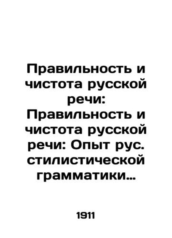 "The Correctness and Purity of Russian Speech: The Correctness and Purity of Russian Speech: The Experience of V. Chernyshevs Russian Stylistic Grammar./Pravilnost i chistota russkoy rechi: Pravilnost i chistota russkoy rechi: Opyt rus. stilisticheskoy grammatiki V. Chernyshev. The Correctness and Purity of Russian Speech: The Correctness and Purity of Russian Speech: The Experience of Russian Stylistic Grammar by V. Chernyshev- St. Petersburg: Ministry of the Interior, 1911.-229, 2 p.; 24,5x15.5 sm. We have thousands of titles and often several copies of each title may be available. Please feel free to contact us for a detailed description of the copies available. SKUbd-e46e18b36e17fb7c."