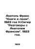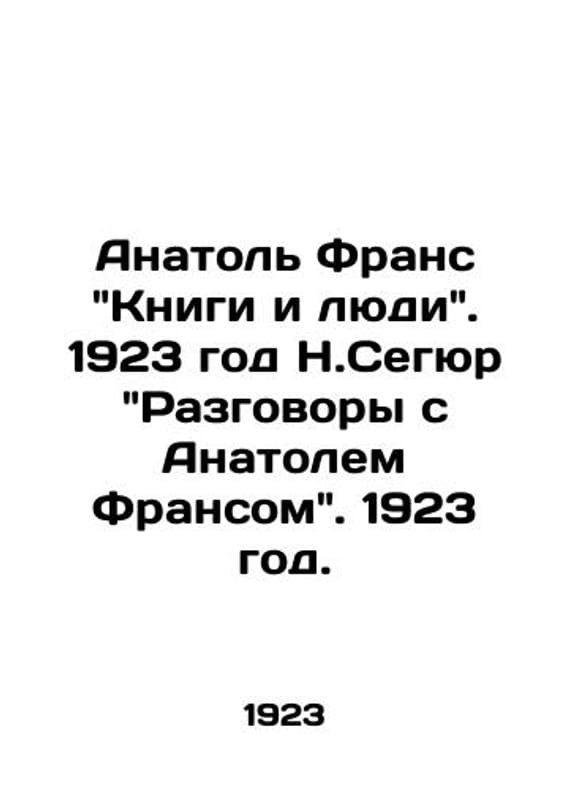 "Anatole France Books and People. 1923 N. Segur Conversations with Anatole France. 1923./Anatol Frans Knigi i lyudi. 1923 god N.Segyur Razgovory s Anatolem Fransom. 1923 god. 1. L. D. Frenkel Publishing House, Moscow, St. Petersburg. 1923. Translated from French by V.A. Azov. Translated from French by C.Warszewski and R.R. France Anatole (named after Thibault Francois Anatole; 1844-1924), the French writer and literary critic, author of the novels Gods Are Thirsty, The Island of Penguins, The Rise of the Angels, The Tais, and others. Member of the French Academy. Laureate of the Nobel Prize in Literature for brilliant literary achievements marked by elegance of style, deeply rooted humanism and a truly Gallic temperament, with the money Frans donated to Russias starving.We have thousands of titles and often several copies of each title may be available. Please feel free to contact us for a detailed description of the copies available. The delivery of this book might be delayed beyond the usual timeframe due to extended processing and preparation before shipment, and faster shipping options are not offered. Please inform us if you need the order by a certain date or have a deadline.SKUbd-e486c84027971d3b"