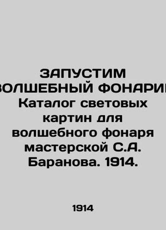 WITH THE WELCOME FANARIK Catalogue of Light Paintings for the Magic Lantern of S.A. Baranovs Workshop. 1914./ZAPUSTIM VOLShEBNYY FONARIK Katalog svetovykh kartin dlya volshebnogo fonarya masterskoy S.A. Baranova. 1914. Catalogue of Light Paintings for the Magic Lantern of S.A. Baranovs Workshop. Moscow, 1914. 2, 122 p. We have thousands of titles and often several copies of each title may be available. Please feel free to contact us for a detailed description of the copies available. SKUbd-e4c06b0a3a4bd311.
