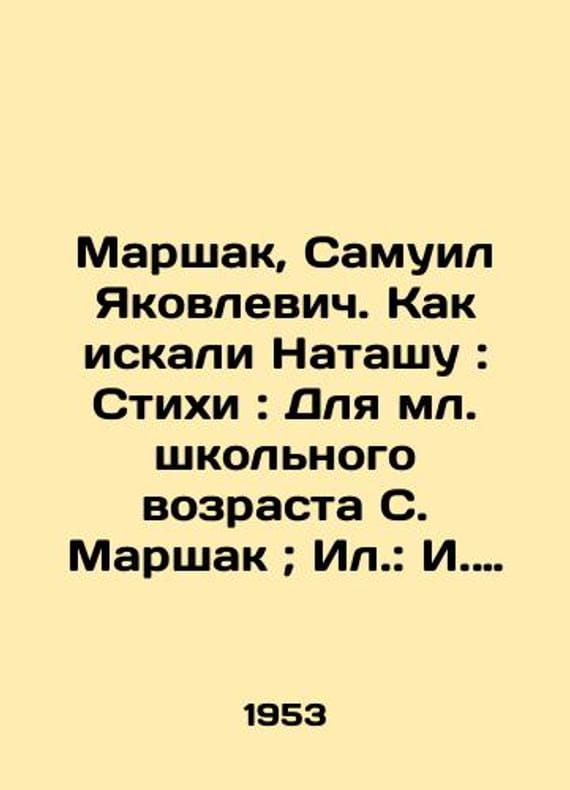 "Marshak, Samuel Yakovlevich. How Natasha was sought: Poems: For Junior School Age S. Marshak; Il: I. Kharkevich. Moscow, Leningrad: Detgiz, 1953/Marshak, Samuil Yakovlevich. Kak iskali Natashu: Stikhi: Dlya ml. shkolnogo vozrasta S. Marshak; Il.: I. Kharkevich. Moskva, Leningrad: Detgiz, 1953. 24 s.: il.: 28x22,5 sm. Marshak, Samuel Yakovlevich. How Natasha was sought: Poems: For Junior School Age S. Marshak; Il: I. Kharkevich. Moscow, Leningrad: Detgiz, 1953.We have thousands of titles and often several copies of each title may be available. Please feel free to contact us for a detailed description of the copies available. SKUbd-e5dfd0d9f37b0e7a."