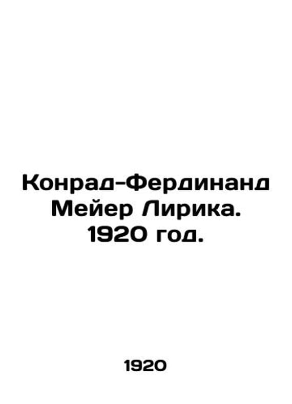 Konrad-Ferdinand Meyer Lyric. 1920./Konrad-Ferdinand Meyer Lirika. 1920 god. The Alconist. St. Petersburg. 1920. Translated by A.V.Lunacharsky, Meyer Konrad Ferdinand (1825-1898) is a Swiss novelist and poet. We have thousands of titles and often several copies of each title may be available. Please feel free to contact us for a detailed description of the copies available. SKUbd-e685a1050ef19ab1.