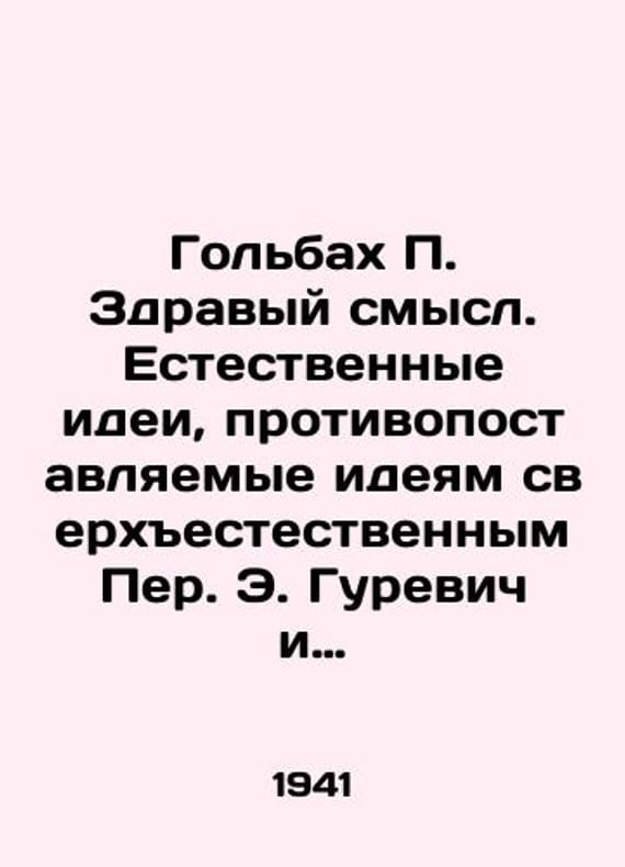 "Golbach Common Sense: Natural Ideas Opposed to Supernatural Ideas by Peter E. Gurevich and A. Guterman. Moscow: Voizdat, 1941. 212 p./Golbakh Zdravyy smysl. Estestvennye idei, protivopostavlyaemye ideyam sverkhestestvennym Per. E. Gurevich i A. Guterman. Moskva: Voenizdat, 1941. 212 s.; Golbach Common Sense: Natural Ideas Opposed to Supernatural Ideas by Peter E. Gurevich and A. Guterman. Moscow: Voizdat, 1941. 212 We have thousands of titles and often several copies of each title may be available. Please feel free to contact us for a detailed description of the copies available. SKUbd-e69a8afc79cd6b01."