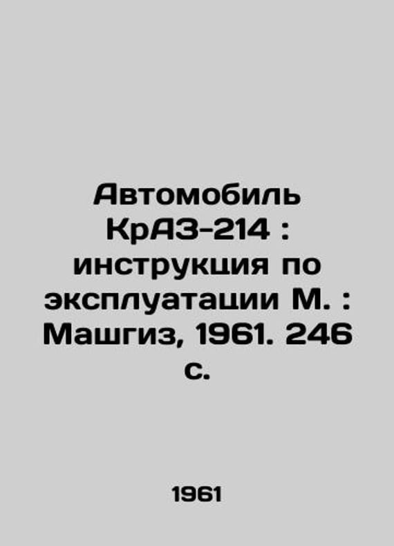 Car KrAZ-214: Instructions for use in Moscow: Mashgiz, 1961. 246 p./Avtomobil KrAZ-214: instruktsiya po ekspluatatsii M.: Mashgiz, 1961. 246 s. KrAZ-214, a Soviet heavy-duty off-road truck with a 6 - 6 wheel formula, manufactured from 1957 to 1967.We have thousands of titles and often several copies of each title may be available. Please feel free to contact us for a detailed description of the copies available. SKUbd-e6cdd7777edf108b.