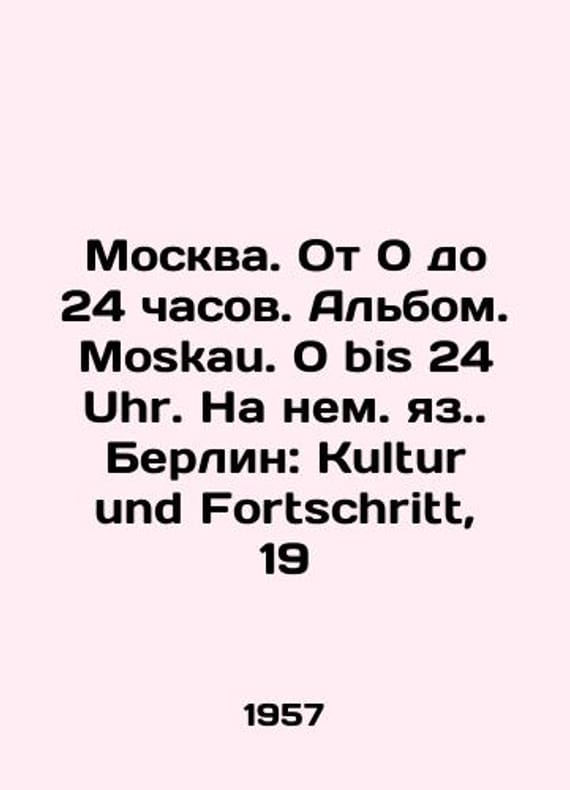 Moscow. From 0 to 24 hours. Album. Moskau. 0 bis 24 Uhr. German language: Berlin: Kultur und Fortschritt, 19/Moskva. Ot 0 do 24 chasov. Albom. Moskau. 0 bis 24 Uhr. Na nem. yaz.. Berlin: Kultur und Fortschritt, 19 Moscow. From 0 to 24 hours. Album. Moskau. 0 bis 24 Uhr. German language: Berlin: Kultur und Fortschritt, 1957. 134 p., 28,7 - 21,6 sm.. SKUbd-e6d0f0eb09bd94a5.We have thousands of titles and often several copies of each title may be available. Please feel free to contact us for a detailed description of the copies available. The delivery of this book might be delayed beyond the usual time due to extended processing and preparation before shipment, and faster shipping options are not offered. Please inform us if you need the order by a certain date or have a deadline.SKUbd-e6d0f0eb09bd94a5