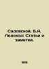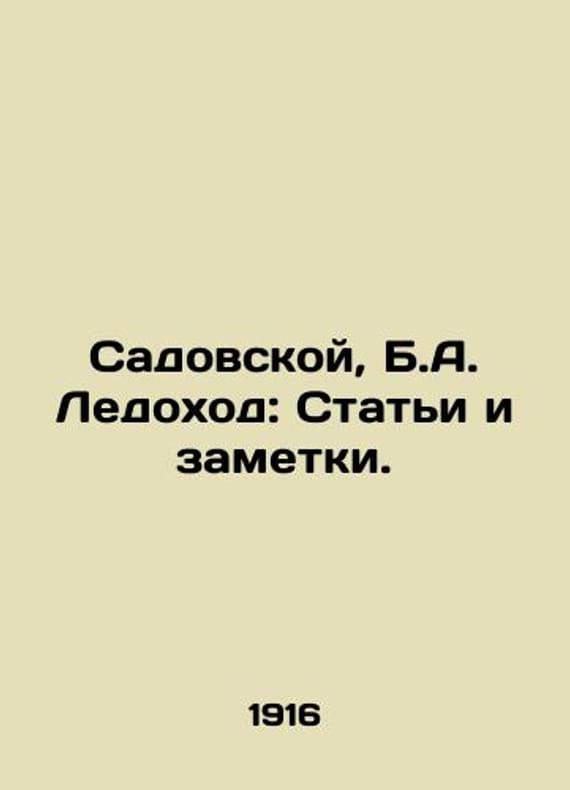 Sadovskaya, B. A. Leonov: Articles and notes./Sadovskoy, B.A. Ledokhod: Stati i zametki. Sadovskaya, B. A. Leonov: Articles and notes. Pg.: 1916.We have thousands of titles and often several copies of each title may be available. Please feel free to contact us for a detailed description of the copies available. SKUbd-e79585cd7e5c9f2.